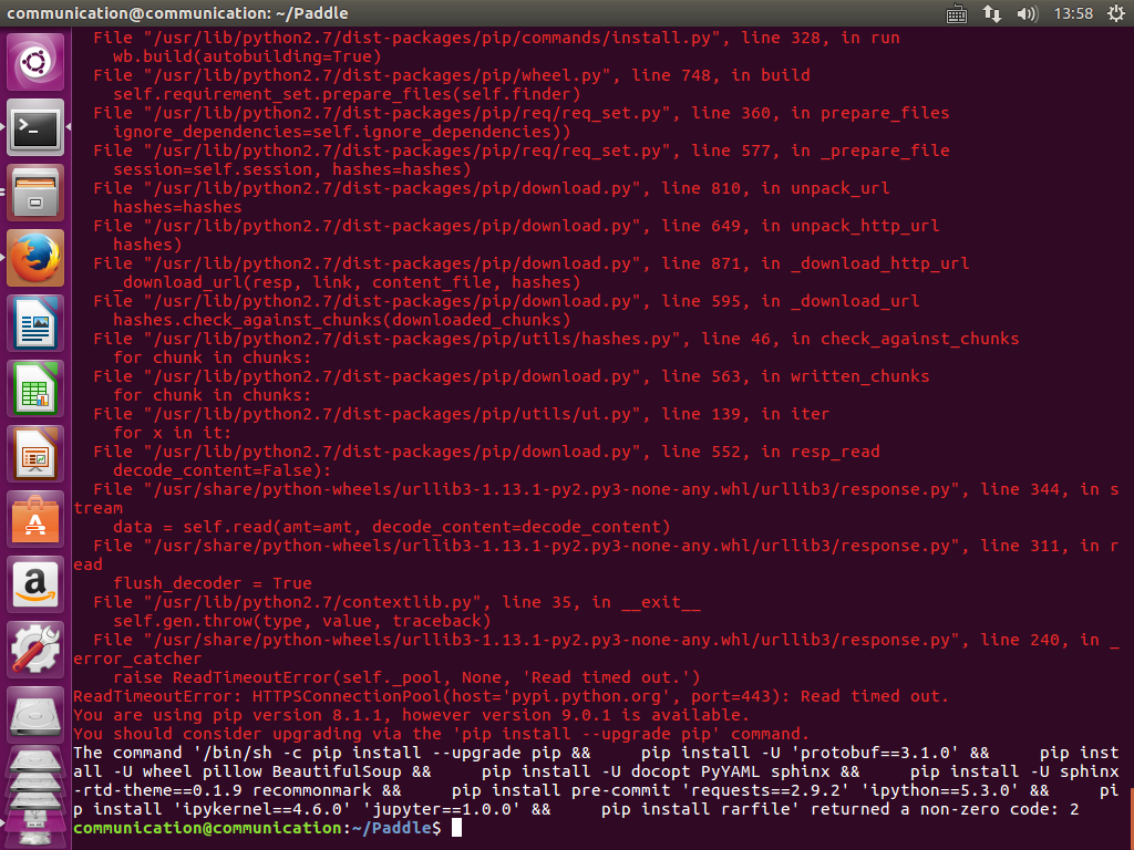 我是新手,就是最近在学习PaddlePaddle的时候,按照文档操作,在制作PaddlePaddle 输入docker build -t paddle:dev . 的时候出现的问题,不知道怎么解决,请给位帮忙,不胜感激。