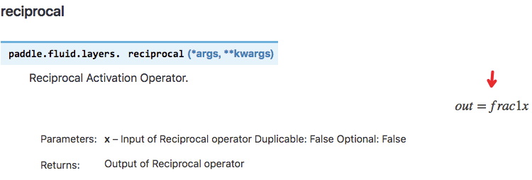 reciprocal http://www.paddlepaddle.org/docs/develop/api/en/fluid/layers.html#reciprocal