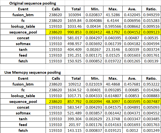 Before EIGEN is used for all sequence pooling implementation (MAX/AVE/FIRST/LAST/...). We use memcpy directly for FIRST/LAST which is a little bit more efficient. I ran a benchmark of text classification to show the performance difference with or without modifications.
