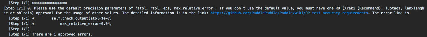 Add the ci check for op test accuracy. 增加CI检查规则:OP 单测里的前向反向精度问题。 检查方法:默认单测中出现设置精度的关键字段或者数值,CI就会报错。 报错示例(检测出两种精度错误):