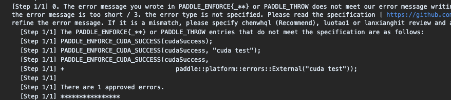paddle::platform::errors::External("cuda test")); // msg is too short