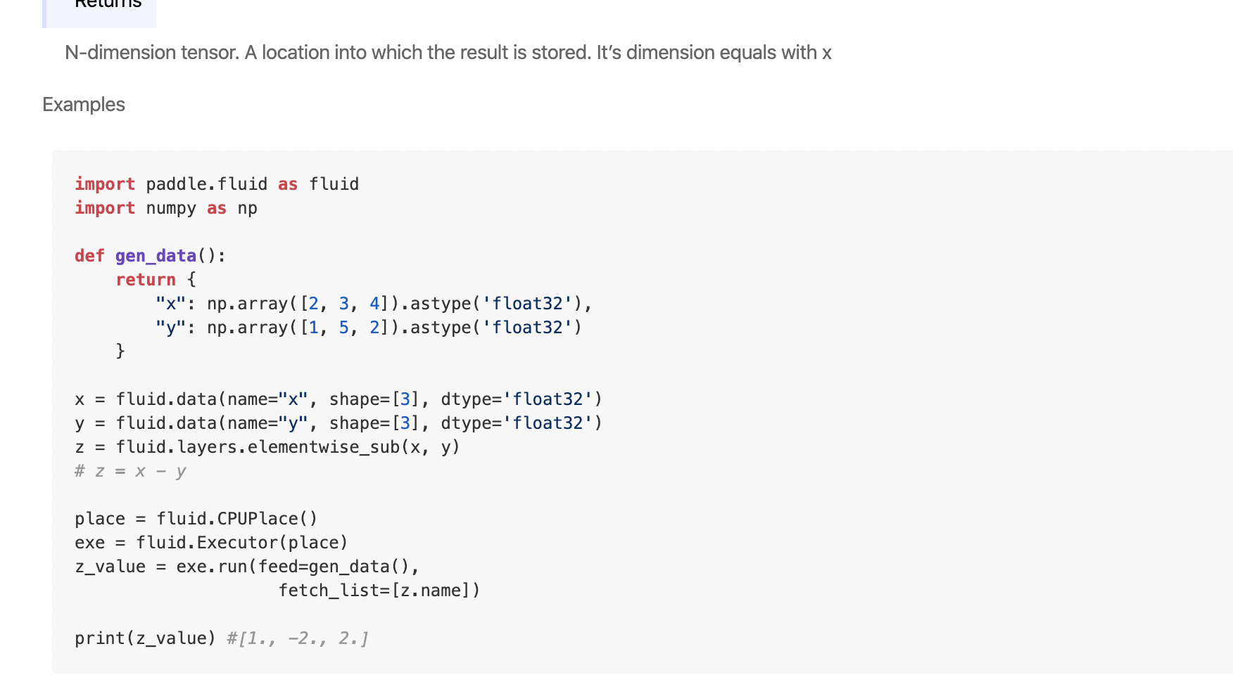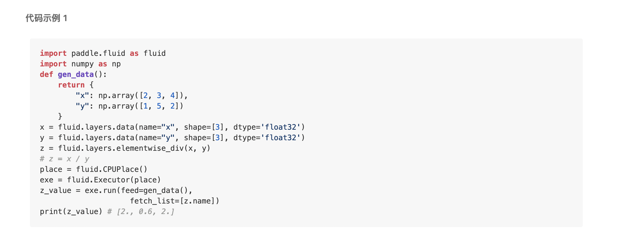 新增elementwise_add、elementwise_sub、elementwise_mul、elementwise_div文档使用示例,文档加入使用 + - * /示例