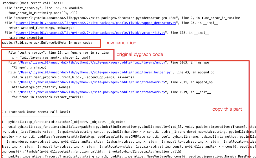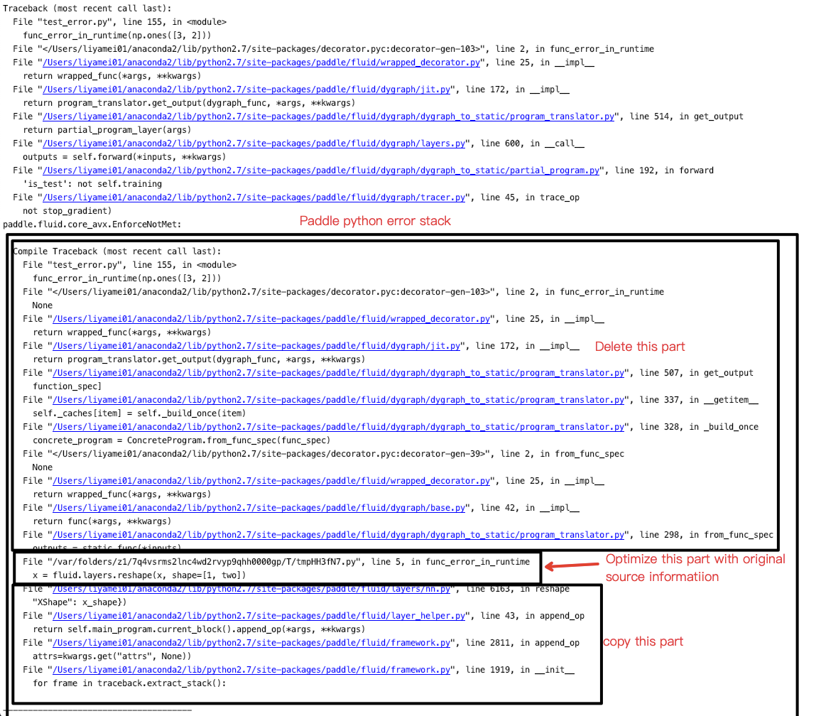 - Replace static code in error stack with original dygraph code