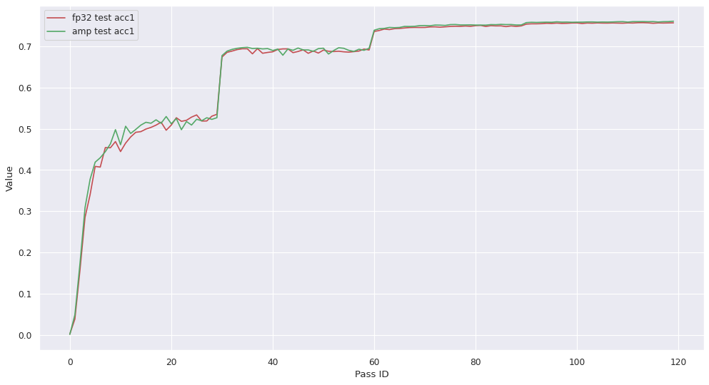 After training 120 passes on ResNet50 model, the top-1 accuracy and top-5 accuracy is described as below.