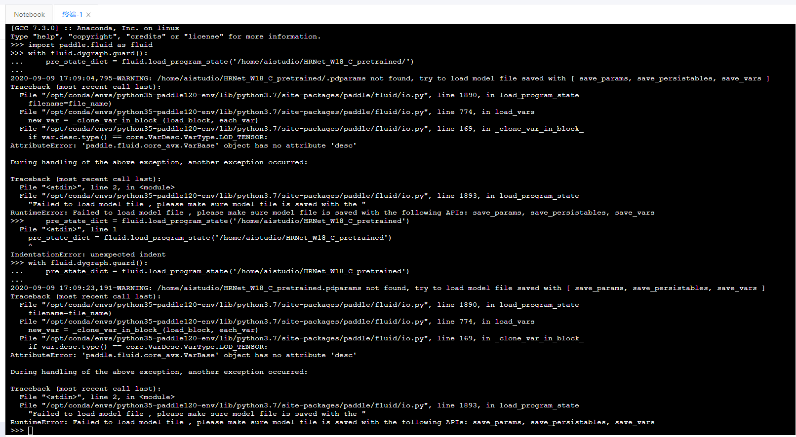 报错信息如上图所示,采用的模型是飞桨官方下载的模型,未进行任何改动,尝试了HRNet以及Resnet,均出现如上报错。
