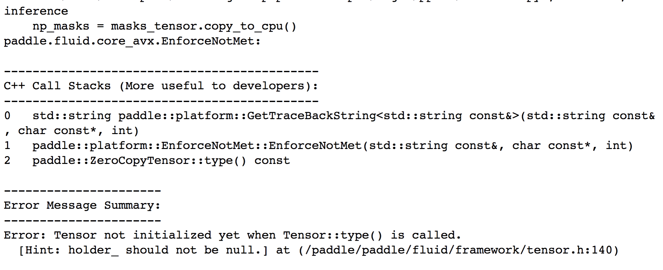 (2)分割模型(mrcnn/cascade_mrcnn)训练完,通过tools/export_model.py导出的模型,使用deploy/python/infer.py进行预测,在512行 masks_tensor.copy_to_cpu()的地方报了Tensor not initialized的错误: