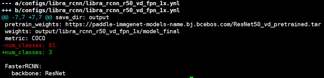 PaddleDetection版本为0.2,paddle版本为1.7 1、在coco官方数据集上训练测试流程均OK 2、在自定义coco格式数据集上,检测的类别为3。 修改配置文件如下: