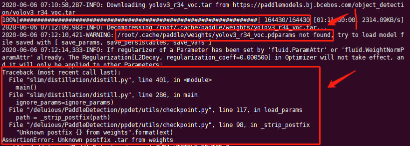第一个程序下载解压之后,说是在规定路径找不到.pdparams文件,我在该路径下也找不到该文件,是不是提供的yolo3_r34_voc.tar文件有问题?