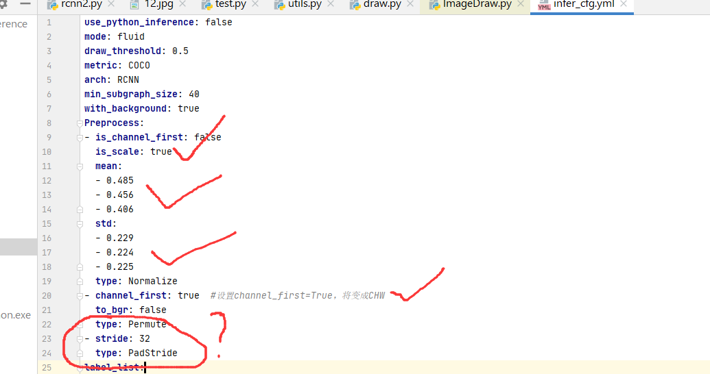 我使用paddedetection infer推理模型能够正常预测,但是换到inference后预测就出错了,我查看了我代码的预处理算子,打勾的是写了代码的,但是预测出错,我怀疑是