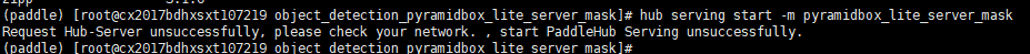 你好,请问hub serving支持离线部署吗,口罩检测模型已经下载到本地/root/.paddlehub/modules/pyramidbox_lite_server_mask,但启动时报错