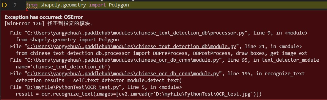 chinese_ocr_db_crnn 模型 shapely 加载报错
