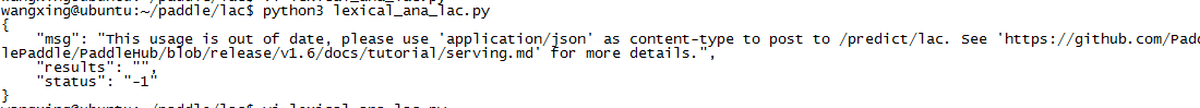 示例地址:https://github.com/PaddlePaddle/PaddleHub/blob/release/v1.7/demo/serving/module_serving/lexical_analysis_lac/lac_with_dict_serving_demo.py