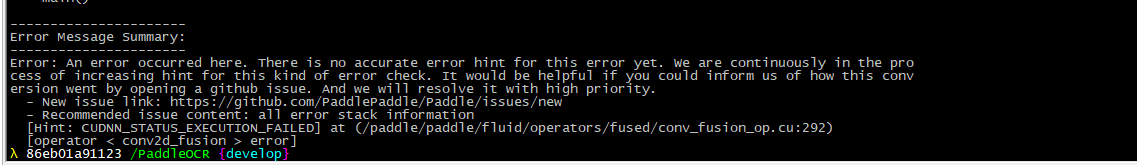 显卡:2060 8G 系统:ubuntu18.04 docker镜像:https://paddleocr.bj.bcebos.com/docker/docker_pdocr_cuda9.tar.gz cudnn:7.6.5 (for cuda9.0) paddle:paddlepaddle-gpu==1.7.2.post97