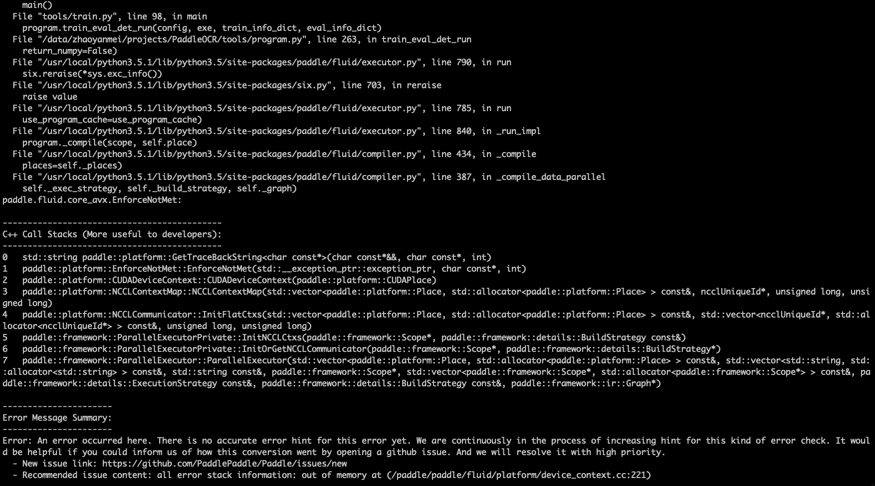 使用的readme中推荐的镜像,paddle版本是:1.7.2,python3.5,cuda10,训练数据是我们自己的数据,整理成了icdar2015的格式,启动训练时出现如下错误: 请问下我该如何解决,多谢!