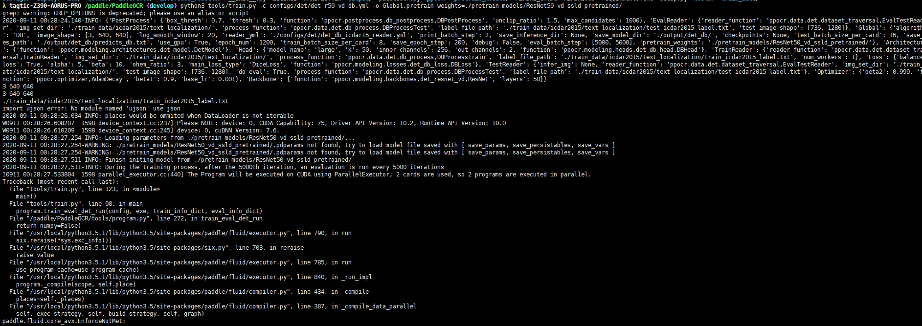 您好,我按照快速安装配置好docker环境以后,下载了icdar2015数据集,在执行训练的时候,遇到如下报错:请问是什么原因导致的呢?