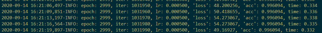 训练停止时屏幕打印信息为:
