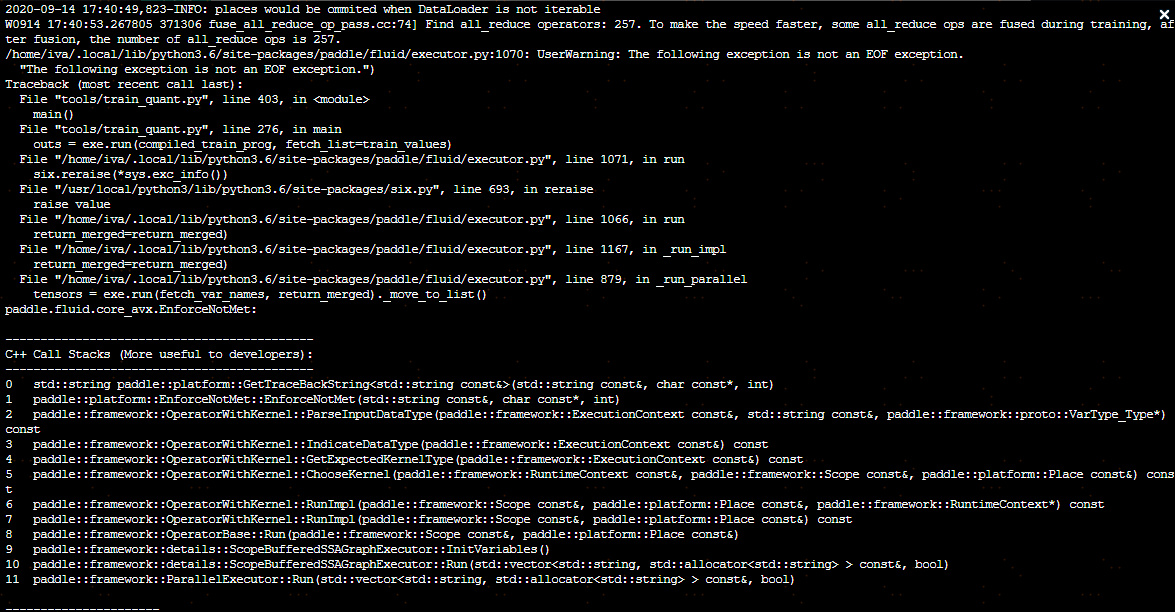 我在检测网络训练脚本train.py里加入了quant_aware函数,训练出现如下错误,请问是什么问题
