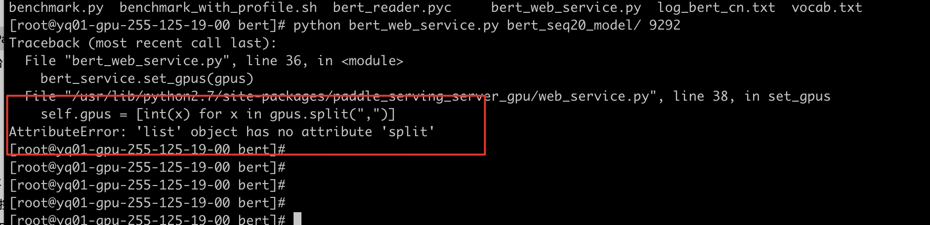 bert 示例启动http预测服务时错误