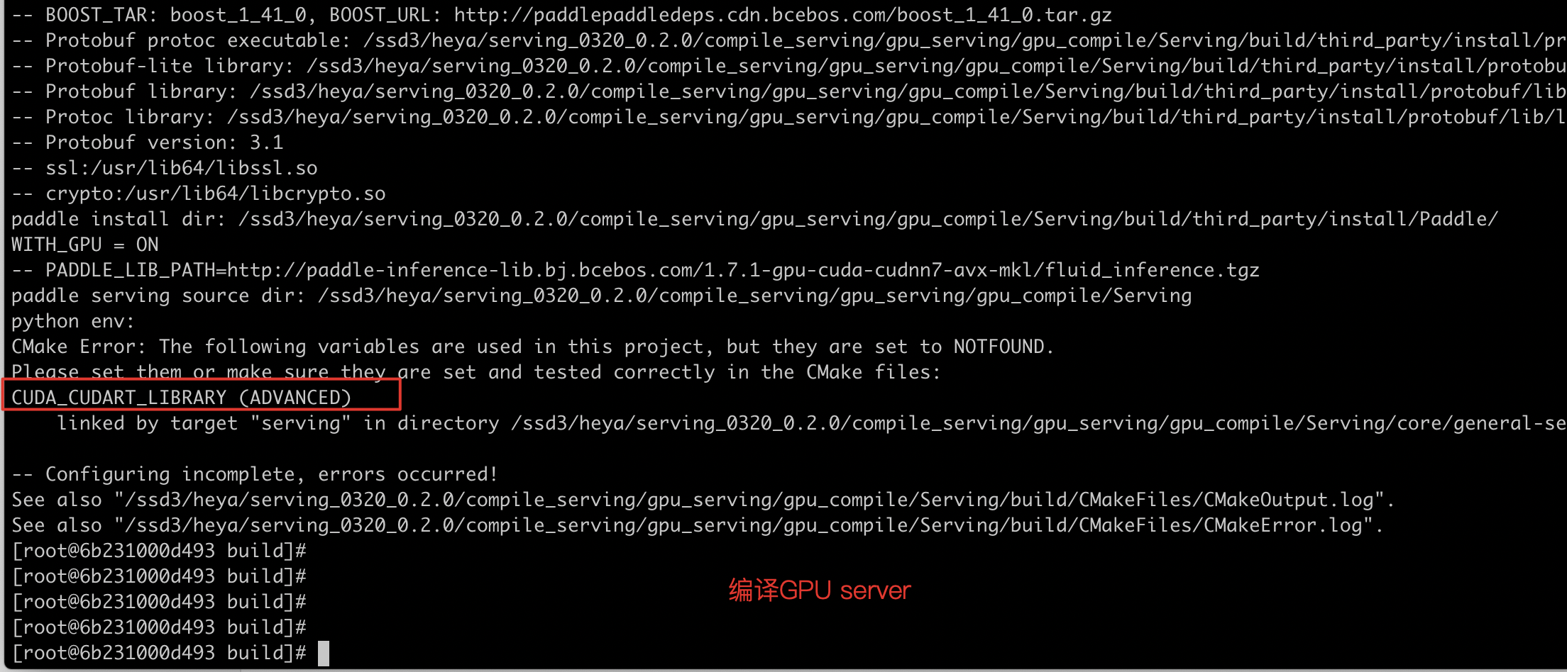 参考编译文档从源码编译gpu版本失败