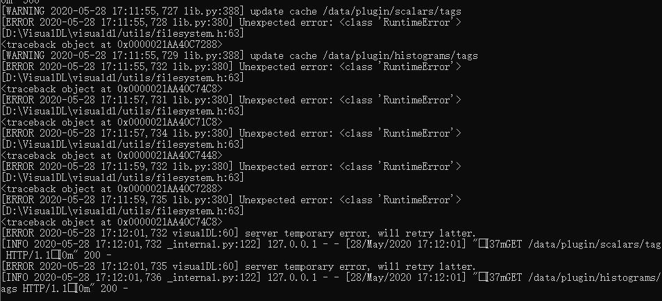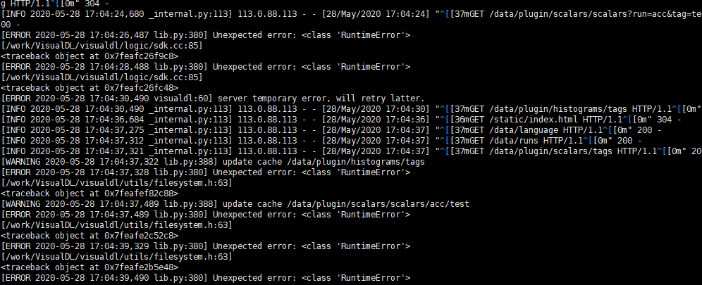 命令行启动VisualDL之后,每次访问VisualDL的页面时命令行都会报错