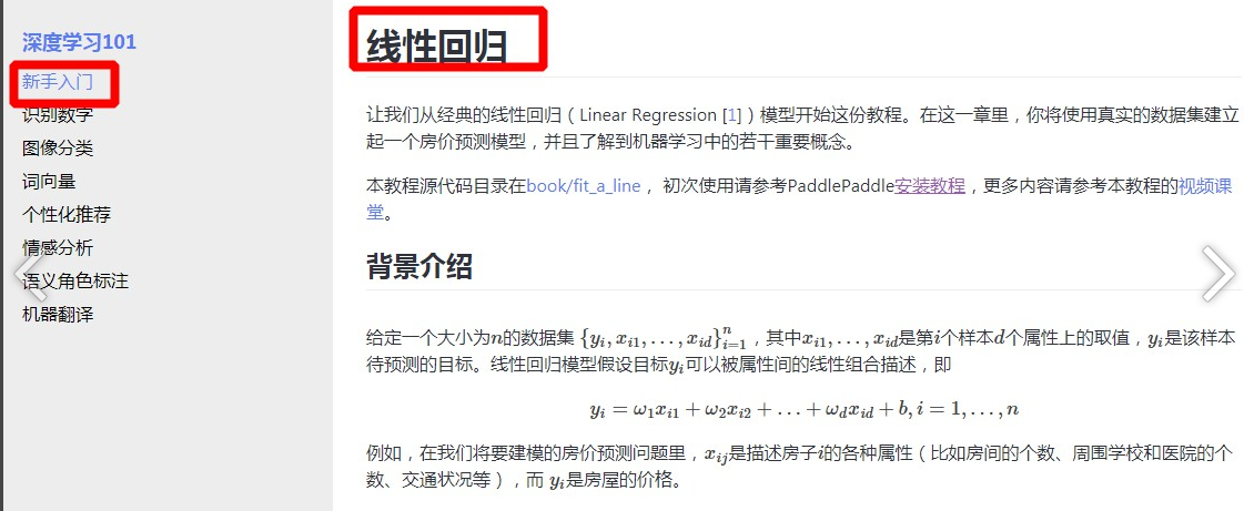 “线性回归”在左侧导航栏里是“新手入门”,建议左侧导航栏也一并改为“线性回归” 谢谢!