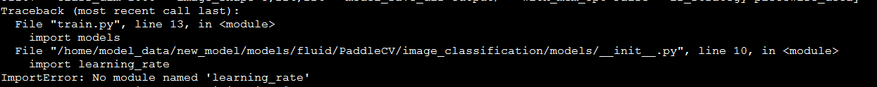 在models的新版本models/fluid/PaddleCV/image_classification/运行train.py时,发现报错ImportError: No module named 'learning_rate'如图