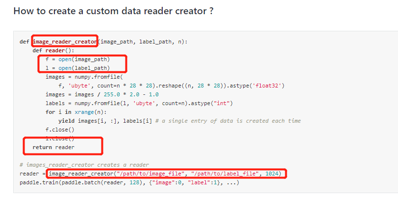 4.想在fluid把自定义数据集加载进来,并创建自己reader,有没有更清楚的教程文档?face_detection那个demo中加载自定义数据集的代码太长了,没有看懂,有没有简单的demo?