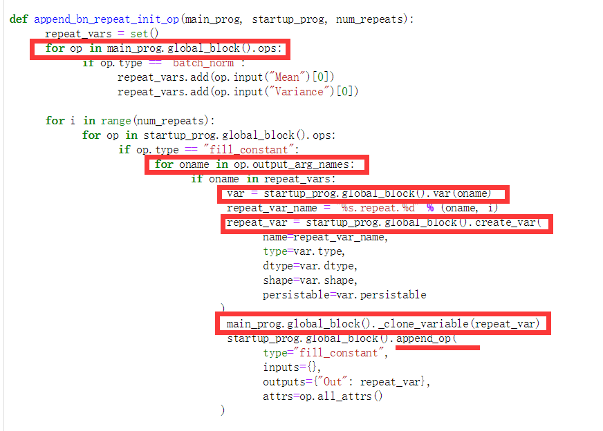 官网的github中的分布训练dist_train.py文档中,append_bn_repeat_ini_op()方法是什么作用?里面有个参数num_repeats,重复次数用于什么?global_block().相关的方法都是什么意思,没有文档看不懂代码。