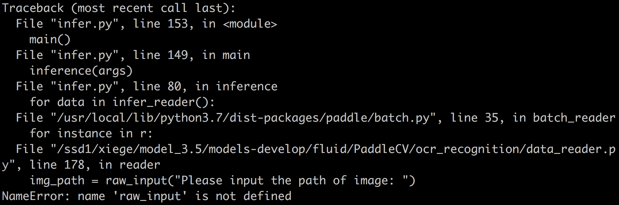 1、ocr_recognition CTC model eval.py有函数缺少参数: