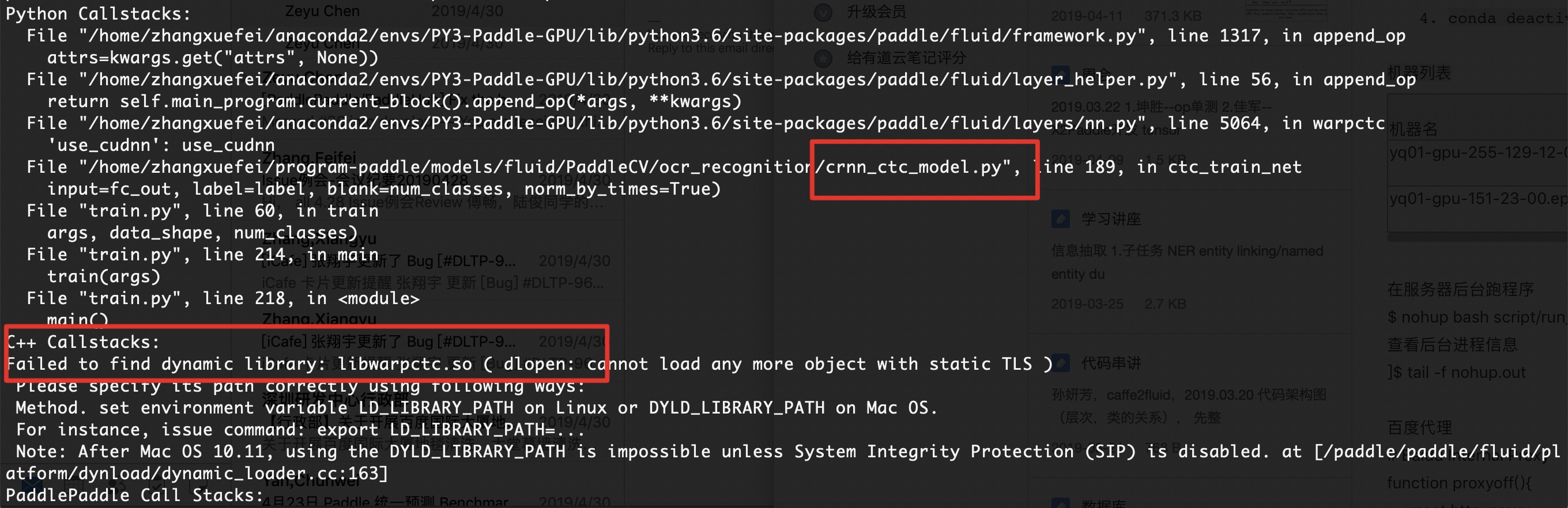 PaddleCV中场景文字识别模型运行错误,提示缺依赖libwarpctc.so
