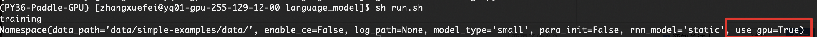 BUG! PaddleNLP,language_model中use_gpu参数指定为false,无法传入。 当指定run.sh文件中use_gpu参数为false时,发现还是无法传入,显示结果为True。