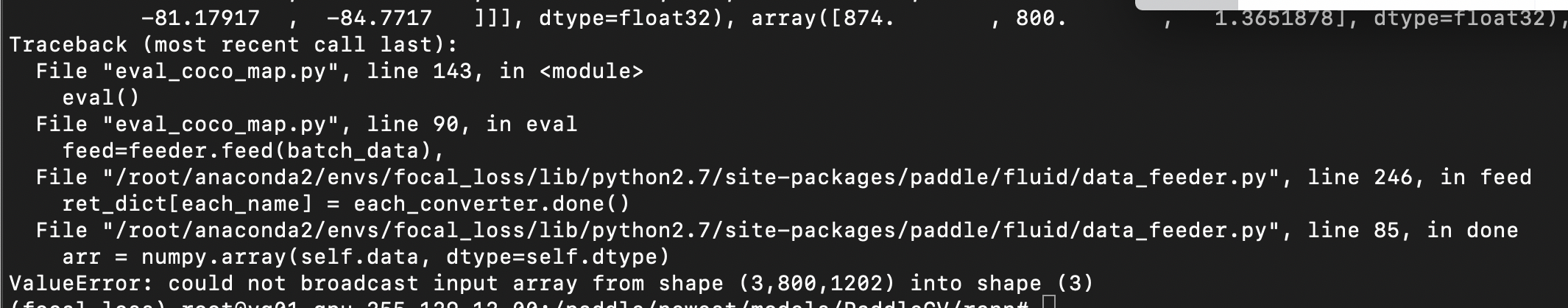 当下载官方Fluid RoIPool minibatch padding模型进行test时,feed数据时会报错