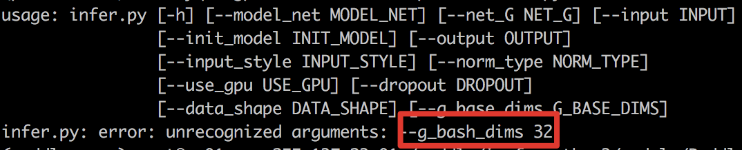 在PaddleCV/gan目录下,执行bash scripts/infer_cyclegan.sh 对训练完成后的cycle_gan模型进行预测,报错信息如下