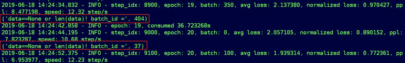 PaddleNLP/neural_machine_translation/transformer/train.py 第375行,在读取数据后,对于某些batch_id,data为空[ ],请问原因是什么?谢谢 (所用数据集中无空白行,调整batch_size和pool_size解决不了)