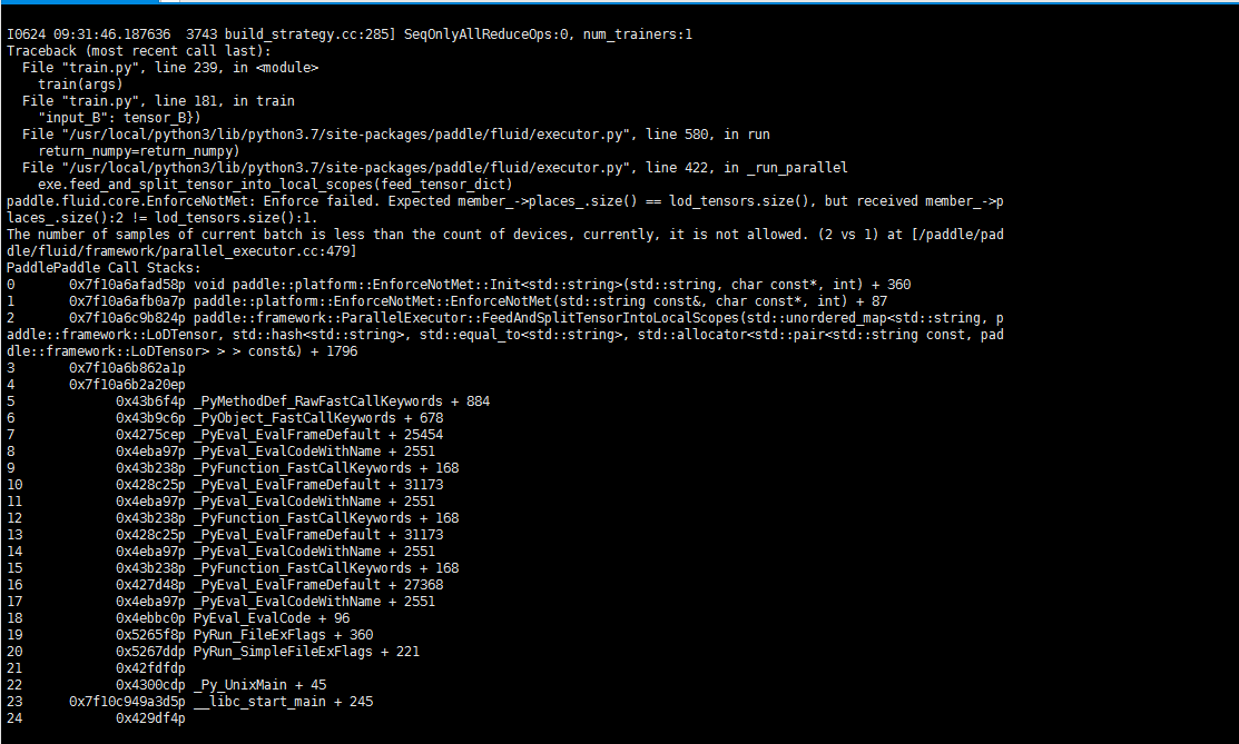 我的环境 padddle 版本 1.4.1 python版本:3.7 系统:centos7.4 两核4G cpu 模式训练,报错如下,烦请大神给看下