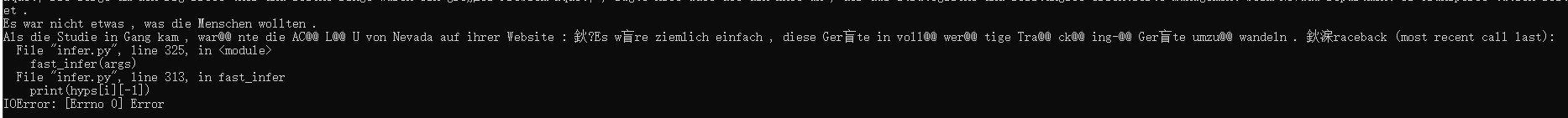 在/PaddleNLP/neural_machine_translation/transformer路径下,执行python -u infer.py --src_vocab_fpath wmt16_ende_data_bpe_clean/vocab_all.bpe.32000 --trg_vocab_fpath wmt16_ende_data_bpe_clean/vocab_all.bpe.32000 --test_file_pattern wmt16_ende_data_bpe_clean/newstest2014.tok.bpe.32000.en-de --batch_size 32 model_path base_model/iter_100000.infer.model beam_size 5 max_out_len 255,对模型进行预测,报错信息如下: