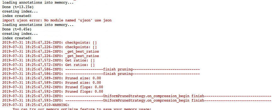 我在训练好SSD模型后,尝试使用Slim进行剪枝和量化训练。在使用量化训练时,效果良好,没有遇到任何问题,但是在进行剪枝时,出现了完全没有效果的问题,具体描述如下: