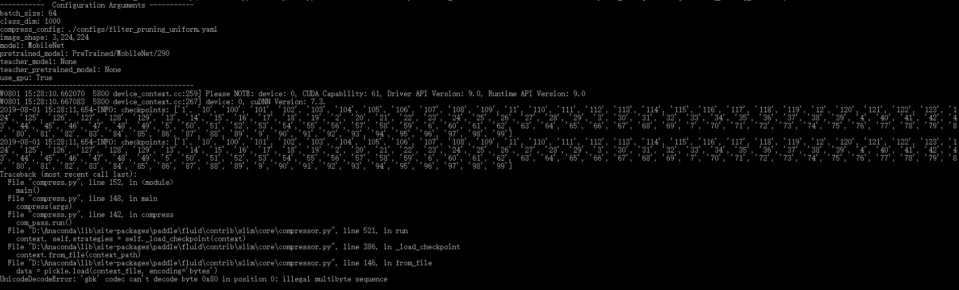 Windows环境下使用PaddleSlim示例对MobileNet进行Uniform剪切报错
