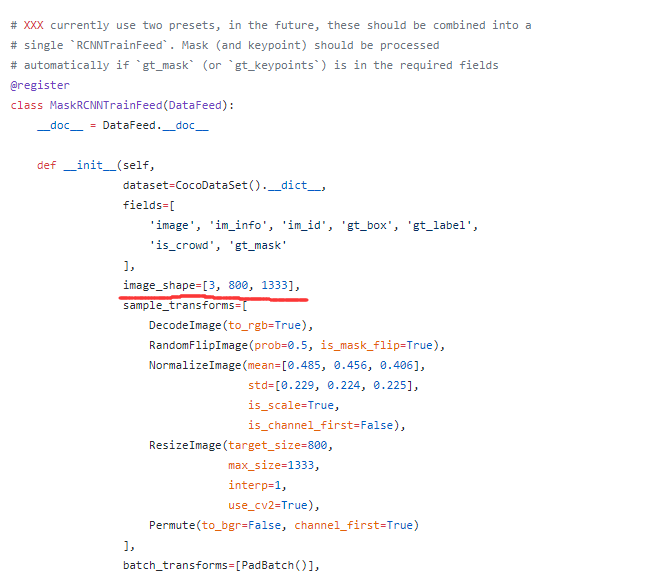 如果有,请问应该在哪里进行配置,在配置文件中未看到相关的配置选项,上述图片中的 DataFeed 感觉输入图像的像素值和长高比例是设置死的。