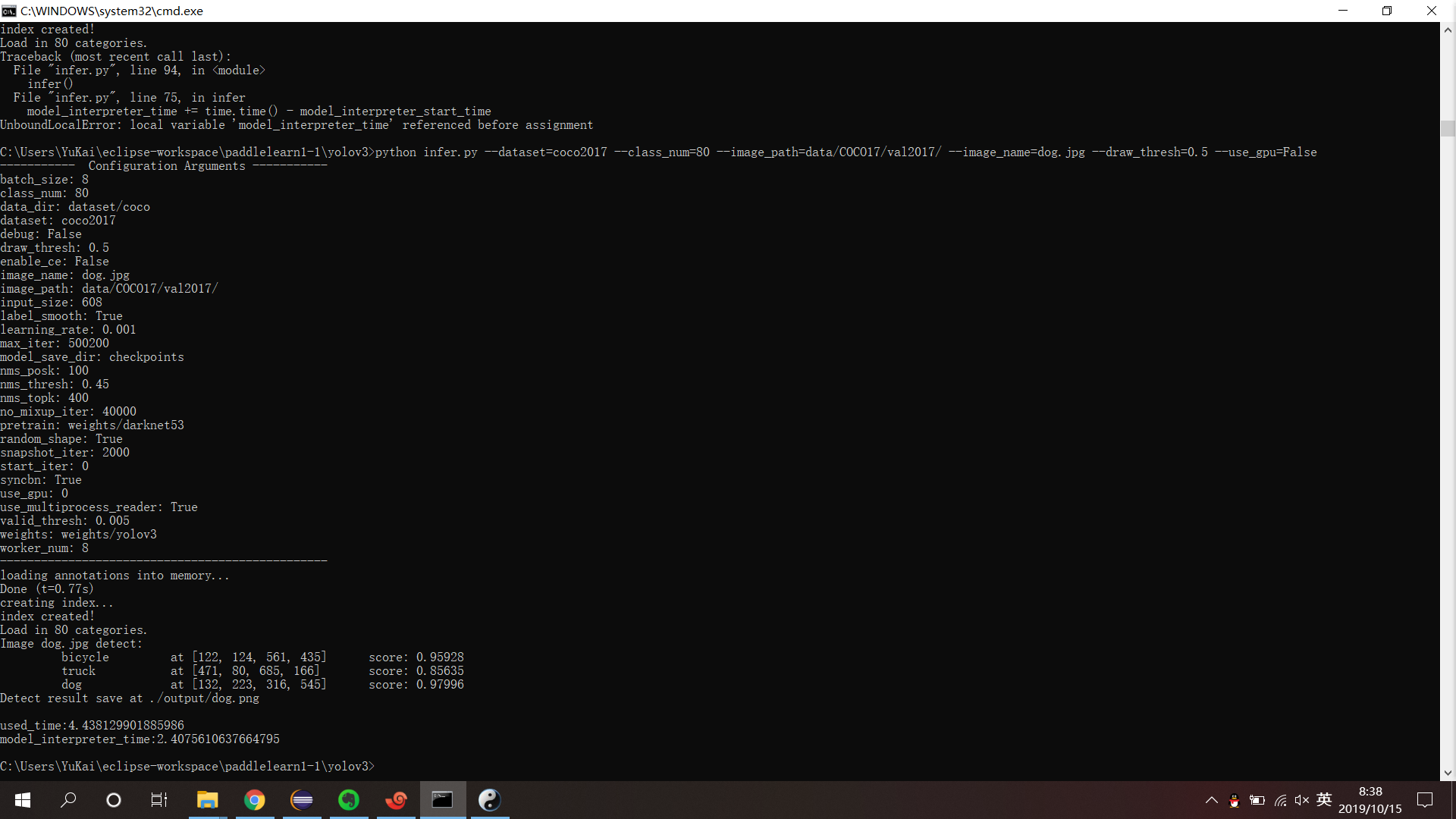 采用win10笔记本电脑跑YOLOV3模型推理的耗时2.4s