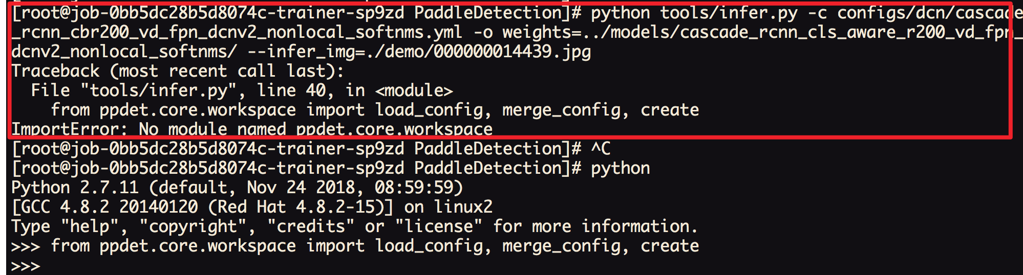 在PaddleDetection目录下,直接运行,提示无法导入,运行python,再导入,是没问题的,想问下这是什么问题呢?