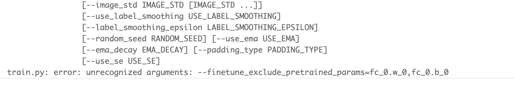 使用了预加载模型,用Finetune时,后面的那个参数finetune_exclude_pretrained_params识别不了,如下图BUG