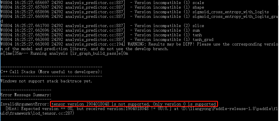 Paddle1.8下,Pix2Pix使用C++进行预测,使用AnalysisConfig和NativeConfig来CreatePaddlePredictor,均报错如下: