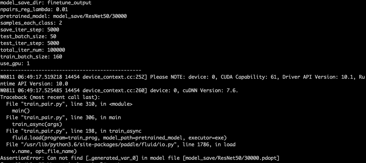 其中model_save/ResNet50/30000是第一阶段训练好的模型,测试其Recall为0.78174,但是启动finetune脚本后,出现如下错误: