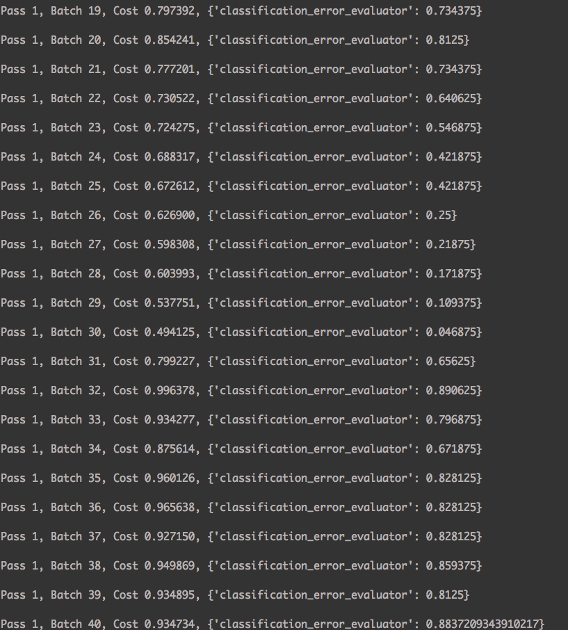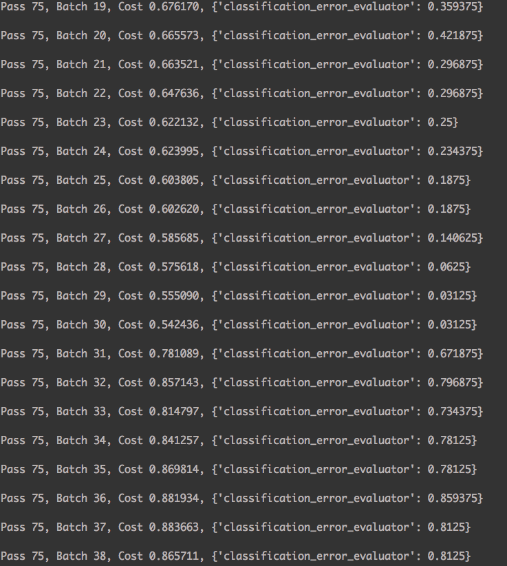 出现错误率稳定在某几个batch特别低,其他batch的错误率很高,且多个pass后仍然是这种情况,请问有可能是什么问题呢? pass1的部分日志: pass75的部分日志: